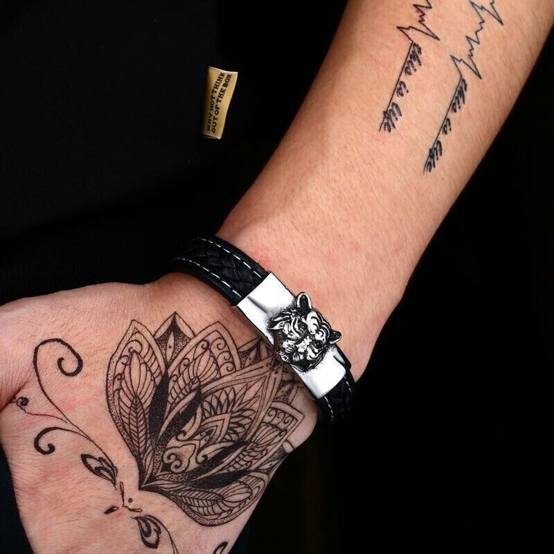 Men Fashion Tiger Head Artificial Leather Titanium Stainless Steel Bracelets