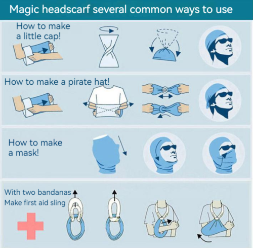 Multi functional headdress: can be used as pirate hat, scarf, sports scarf, armband, tie, assembly scarf, mask, Alice band, eye mask, hair cover, soft silk and Balaclava hat.