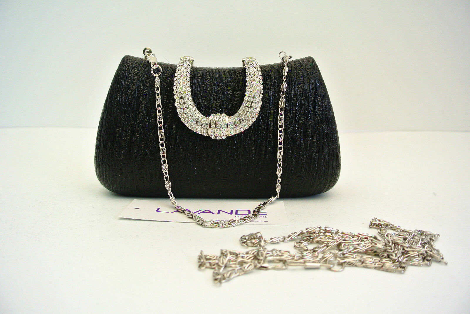 Our NEW Shining Ladies Evening Clutch Bag is the perfect accessory for any special occasion. Featuring a sparkling diamond clasp, it will add a touch of elegance and style to any evening look. The shoulder chain makes it comfortable to wear all night, while the spacious interior can carry all your essential items.