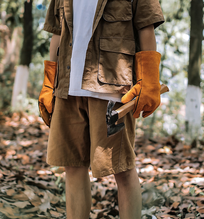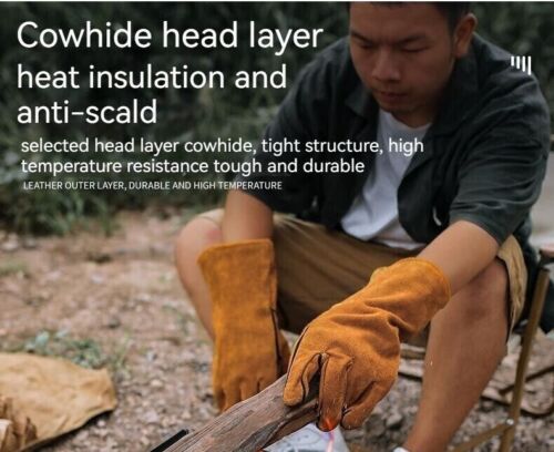 Outdoor Camp BBQ Long Anti-hot Gloves Cowhide Leather Heat Resistant Protection