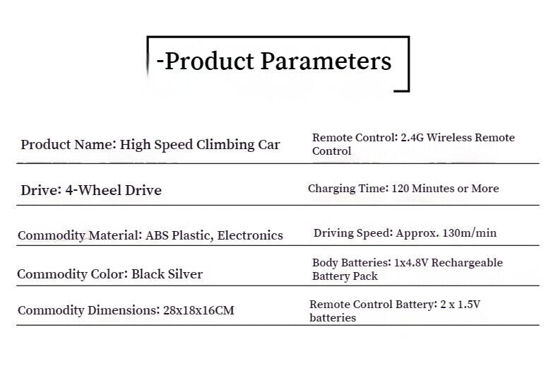 - Four-Wheel Drive System: Equipped with a four-wheel drive system, this racing car delivers exceptional traction and power. It can effortlessly climb inclines, navigate through grass, gravel, sand, and even rocky terrains. The four-wheel drive system ensures optimal performance and stability, allowing for an all-terrain racing experience.